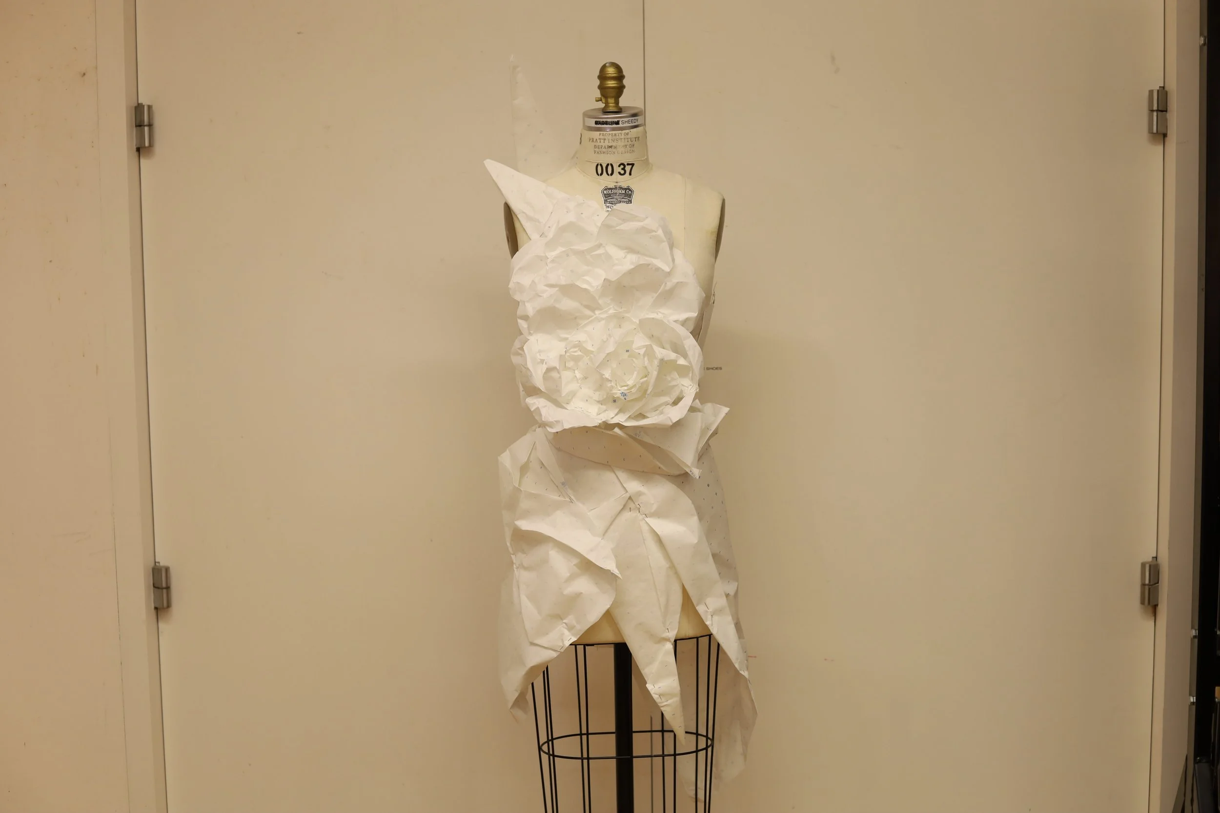 Jacket, pants, and top. jacket has an extended neck, pants have ‘fins’ coming out of the sides. (april 2024).
